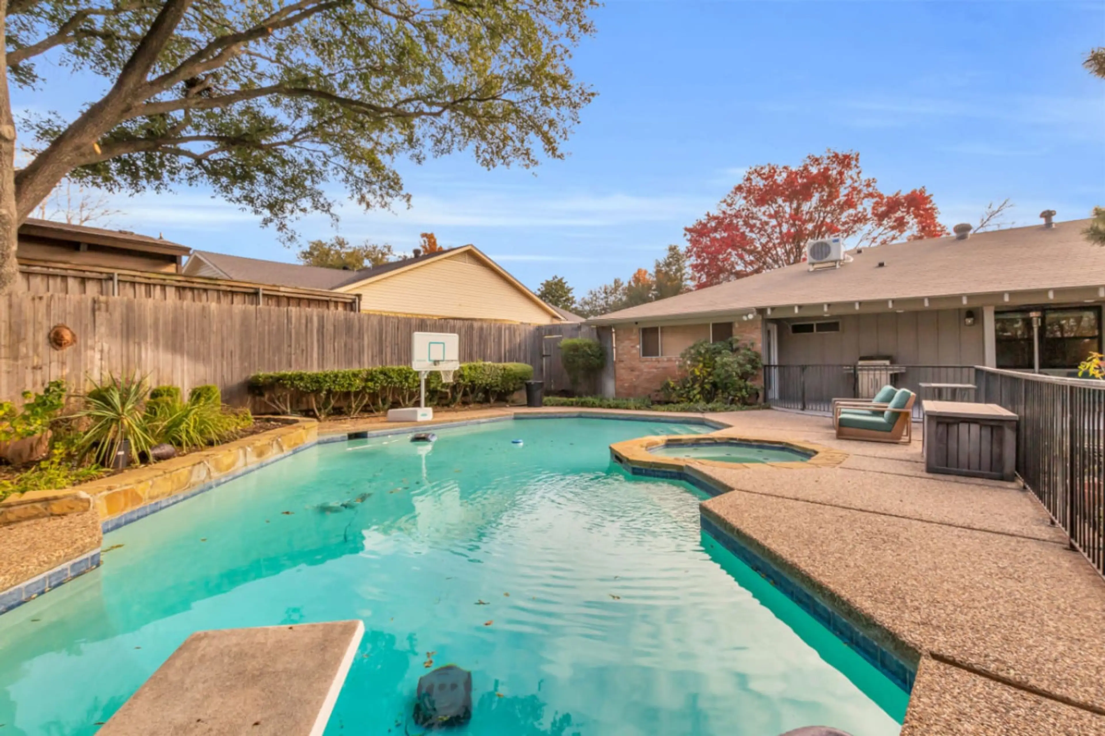 Spacious single-story 4BR, 3BA home in North Dallas near Addison and Plano. This 2,712 sq ft retreat sleeps 9 with a king primary suite, multiple queen beds, and flexible guest rooms. Enjoy a heated pool, private home gym, gas fireplace, fully equipped kitchen with double oven, fast Wi-Fi, and a ful...